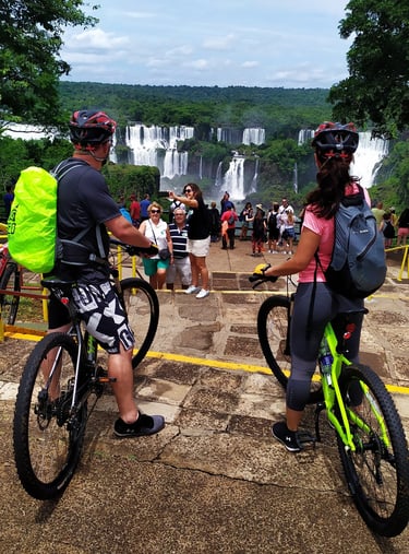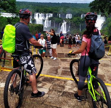 Visitamos en bicicleta Circuito Chico en Bariloche, viajamos en Catamarán por el Lago Nahuel Huapi, recorremos los 7 Lagos, conocemos Cataratas Brasileñas en bici y hacemos el Camino del Yaguareté en bici en el Parque Nacional Iguazú